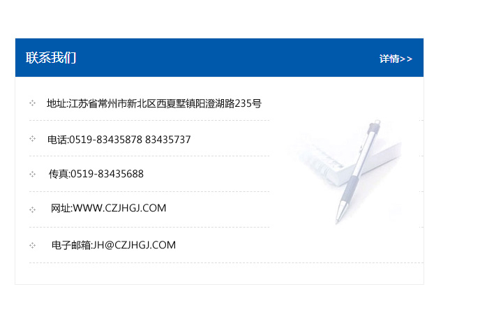 地址:常州市新北區友邦商務大廈1幢16、17層  電話:0519-85101652  傳真:0519-85112595  郵編:213022  網址:www_cz-jiayue_cn.zhong-nong.com  郵箱:xiajifengaa@163.com